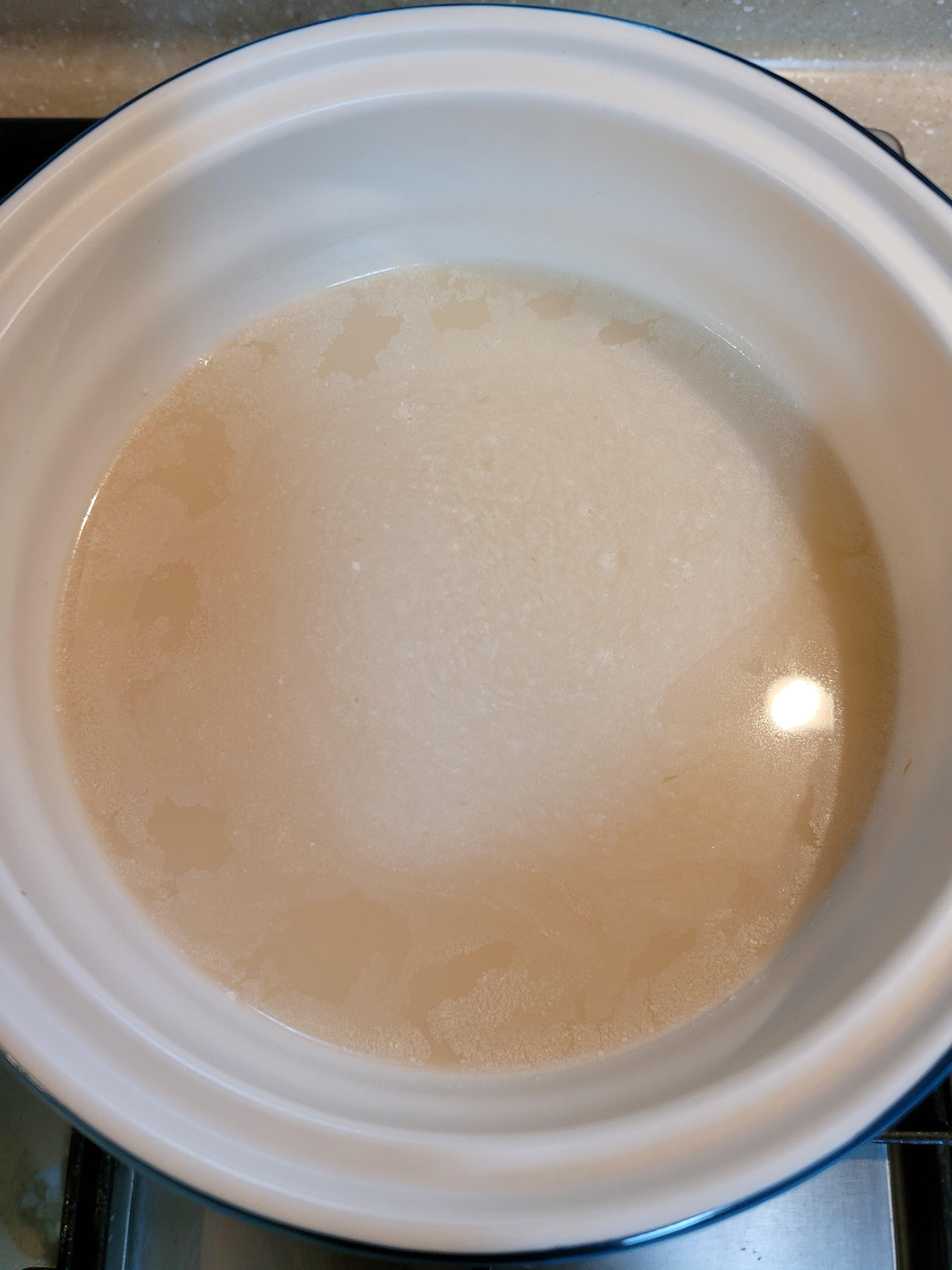 사골곰탕과 물을 섞어 끓여주세요.